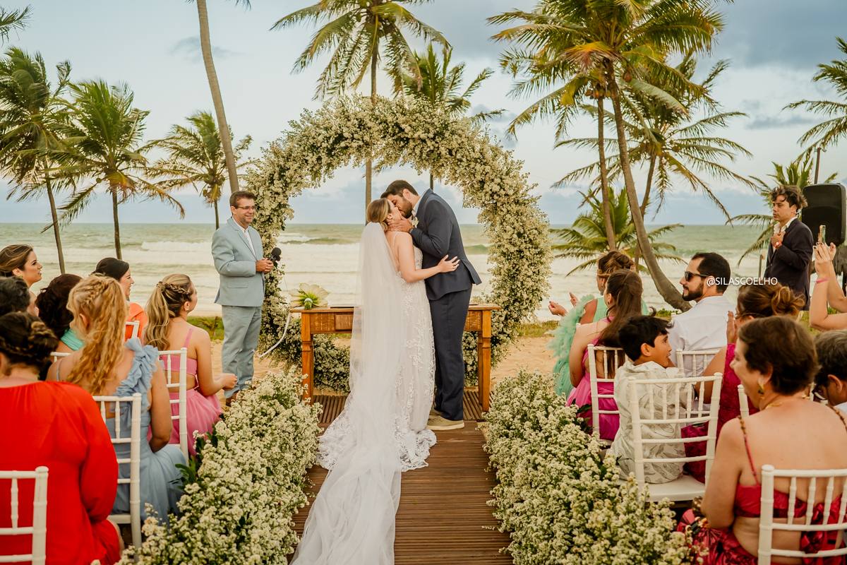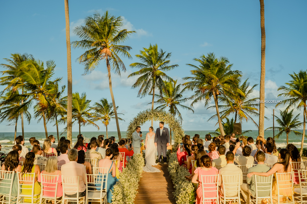 que casamento incrível rolou aqui no Grand Palladium Imbassaí, na Bahia! A Marina e o Guilherme vieram direto de Minas Gerais para realizar o sonho de casar com os pés na areia, de frente para o mar e ao pôr do sol. E olha, tudo aconteceu do jeitinho que eles queriam!