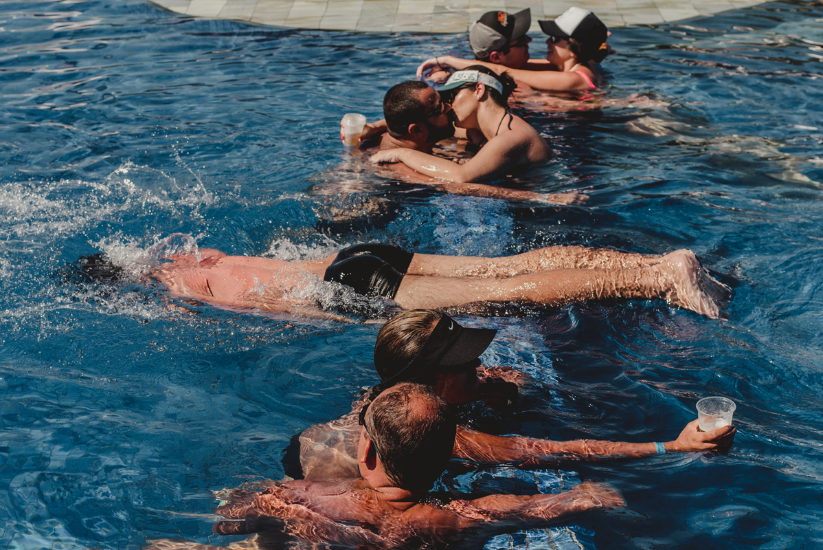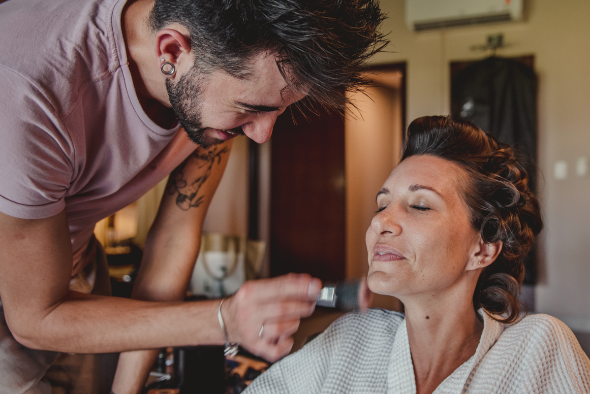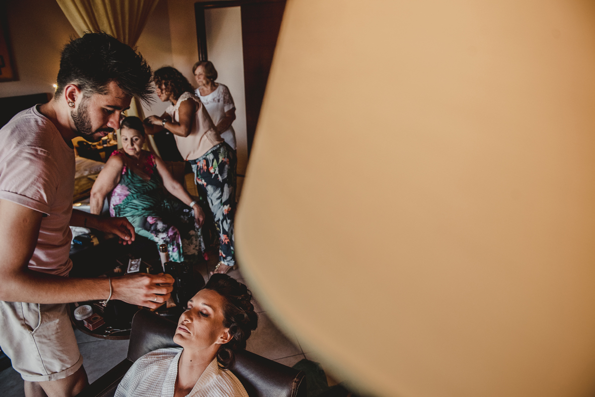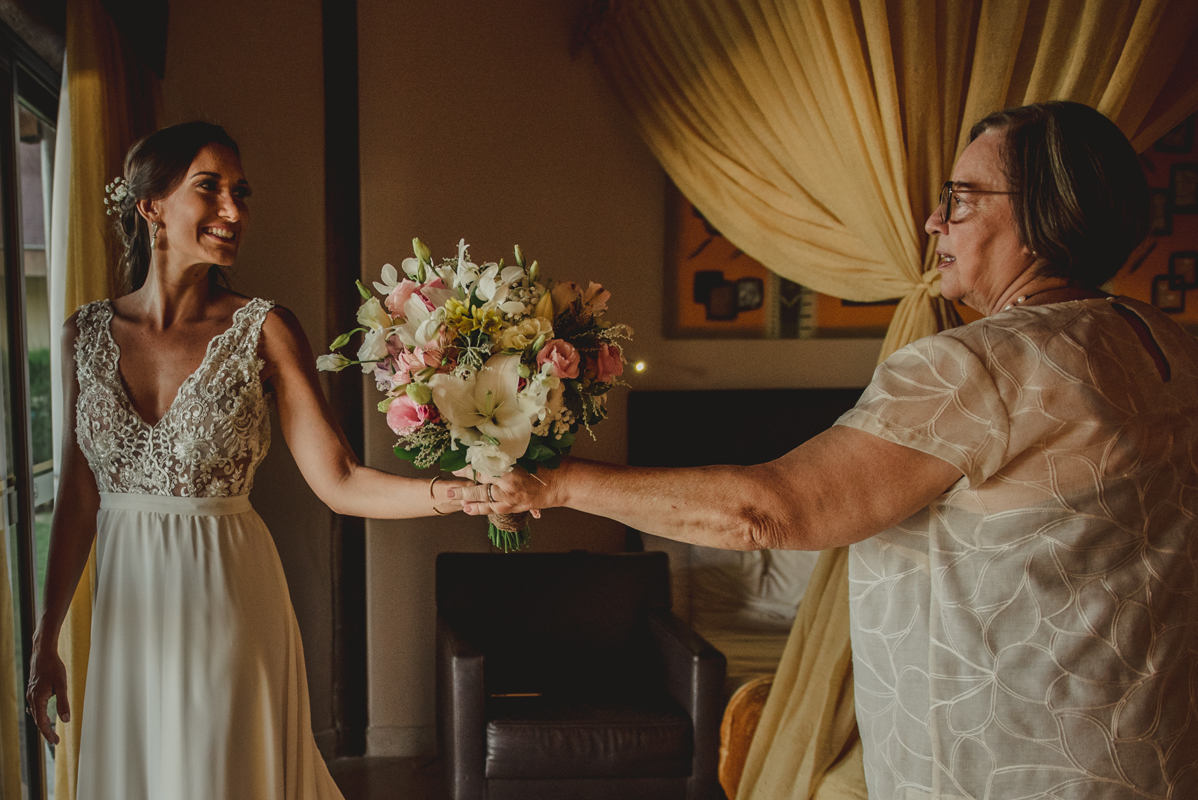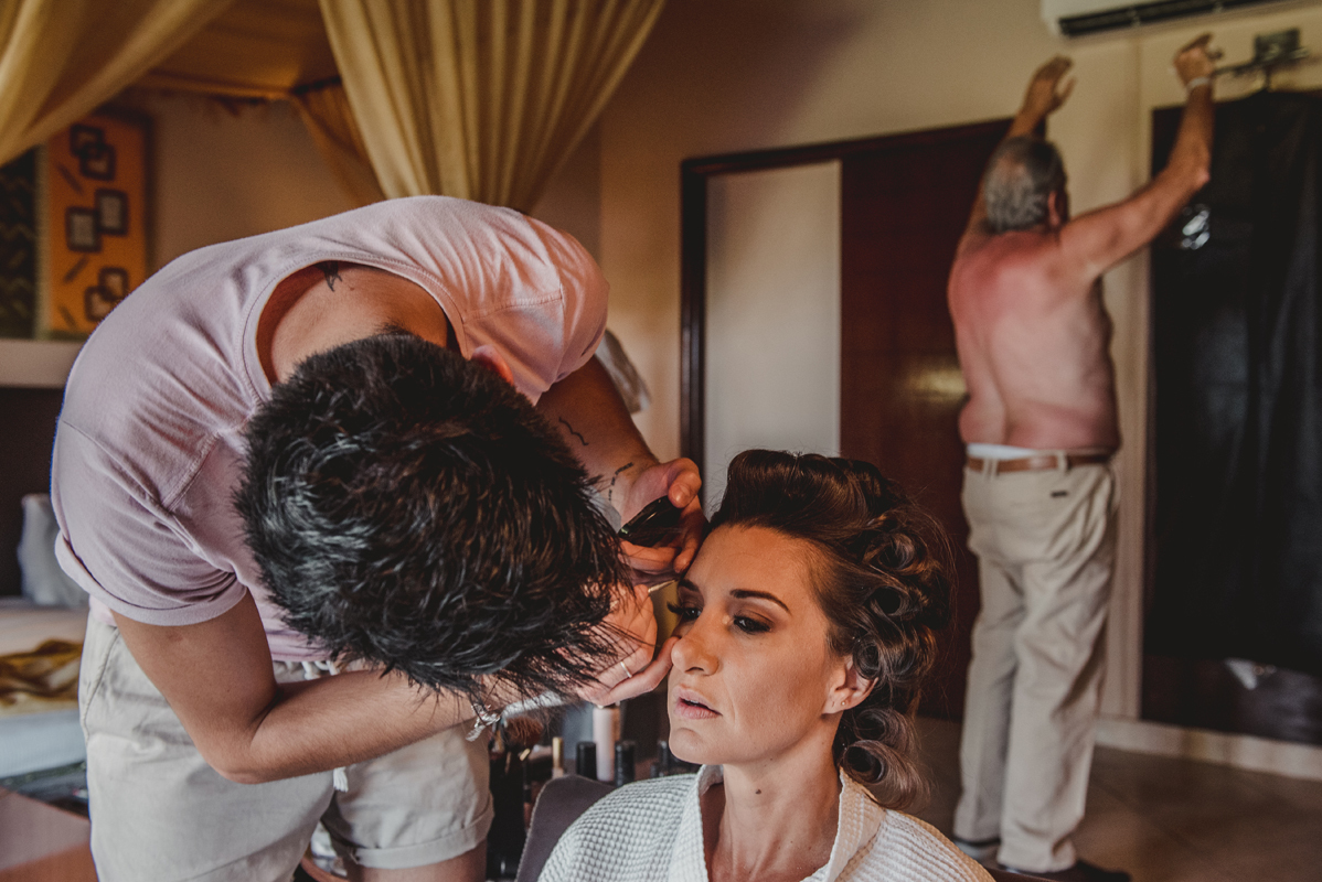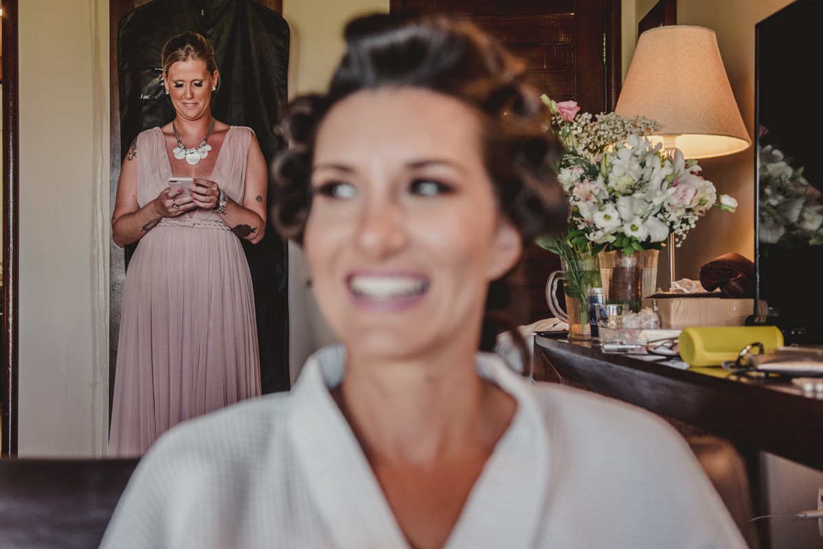 O dia começou cedo com todo mundo na piscina, logo após todos foram para os quartos e aí foi só alegria!! O noivo se arrumou com seus padrinhos e a noiva no bangalô com suas madrinhas, mãe e sogra. Por lá sempre passavam muitas amigas e toda família que estava lá pra cerimônia.