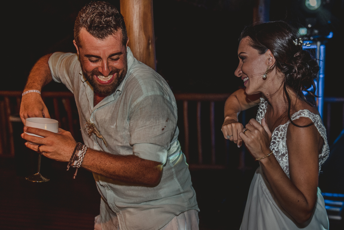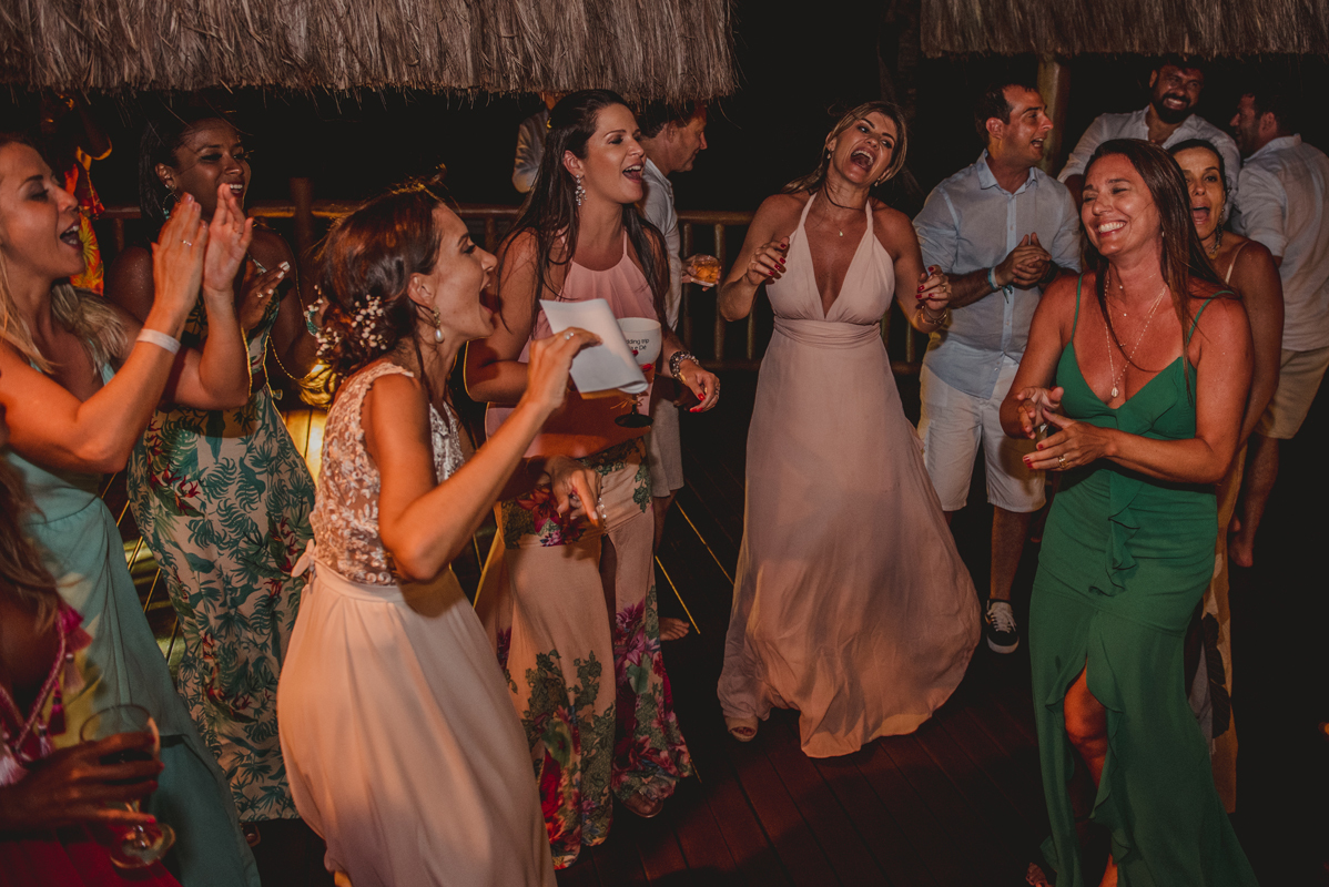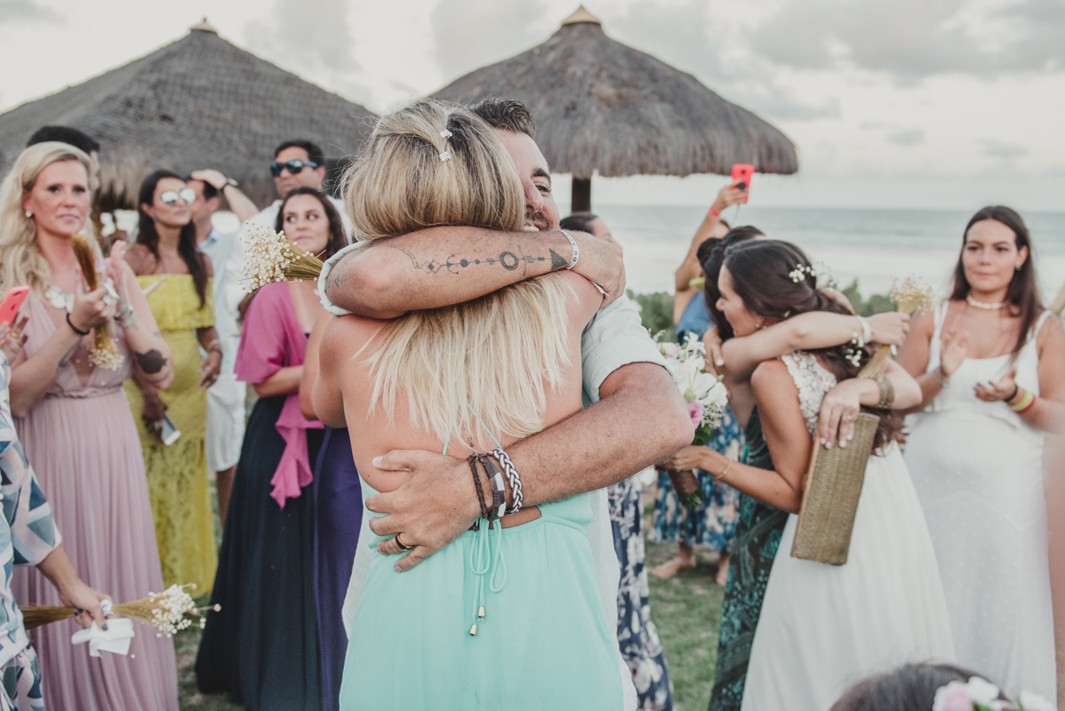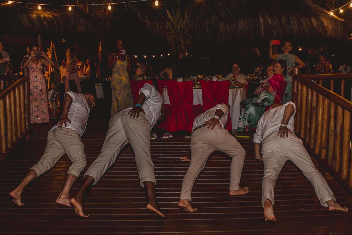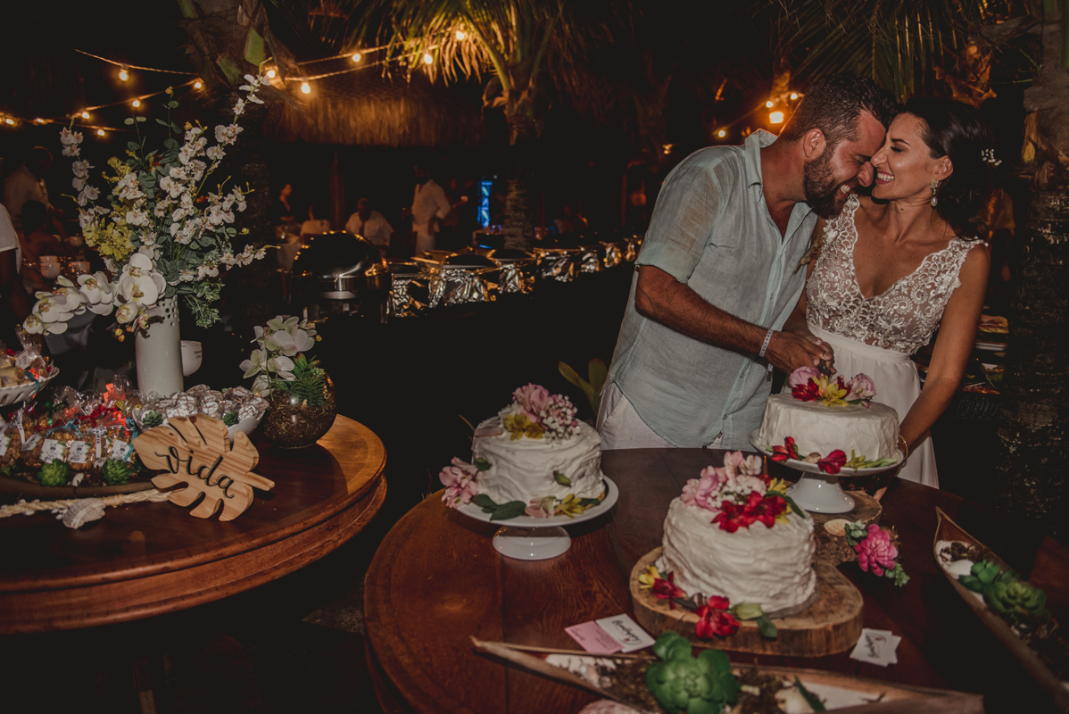 A cerimônia aconteceu exatamente no por do sol com noivo descalço, todo mundo em pé emanando boas energias, com muito amor e amizade. A festa veio logo em seguida e foi de arrebentar! Yeaaah!
