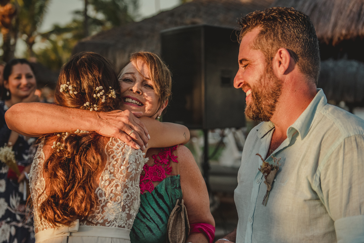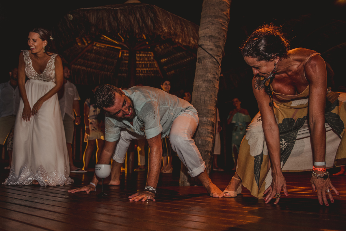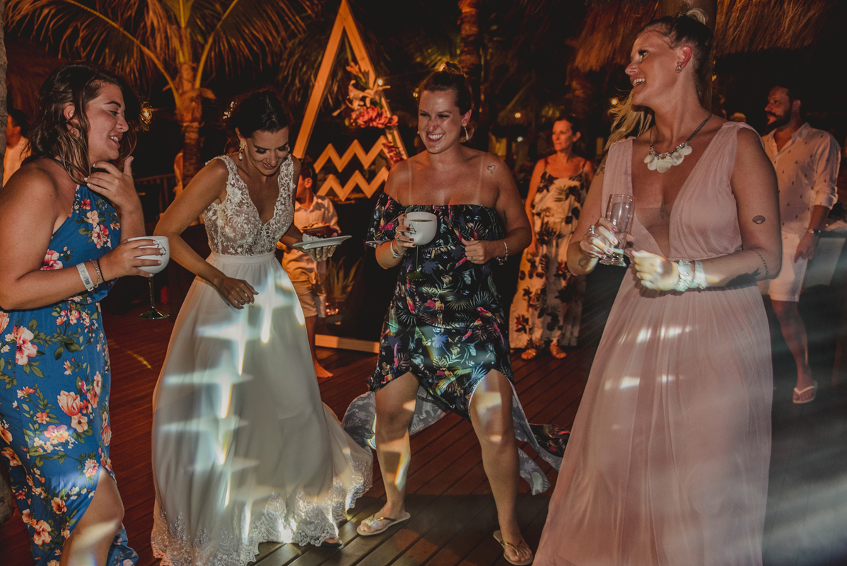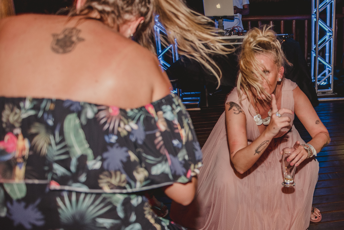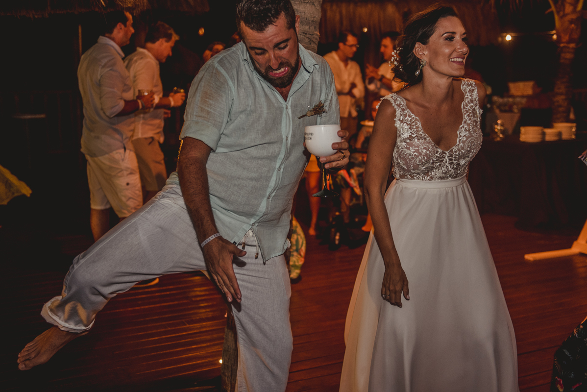 A cerimônia aconteceu exatamente no por do sol com noivo descalço, todo mundo em pé emanando boas energias, com muito amor e amizade. A festa veio logo em seguida e foi de arrebentar! Yeaaah!