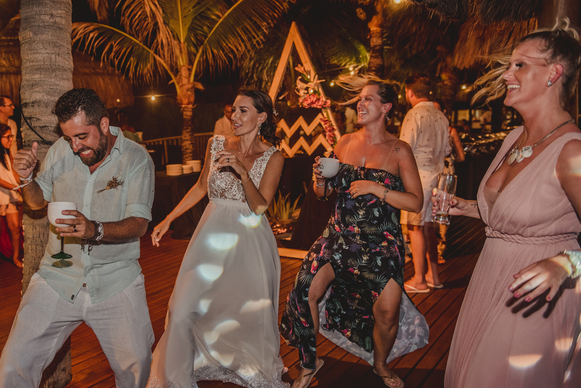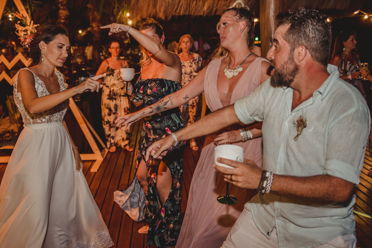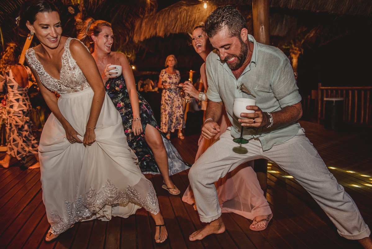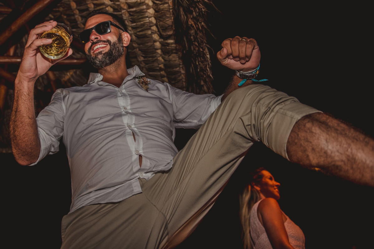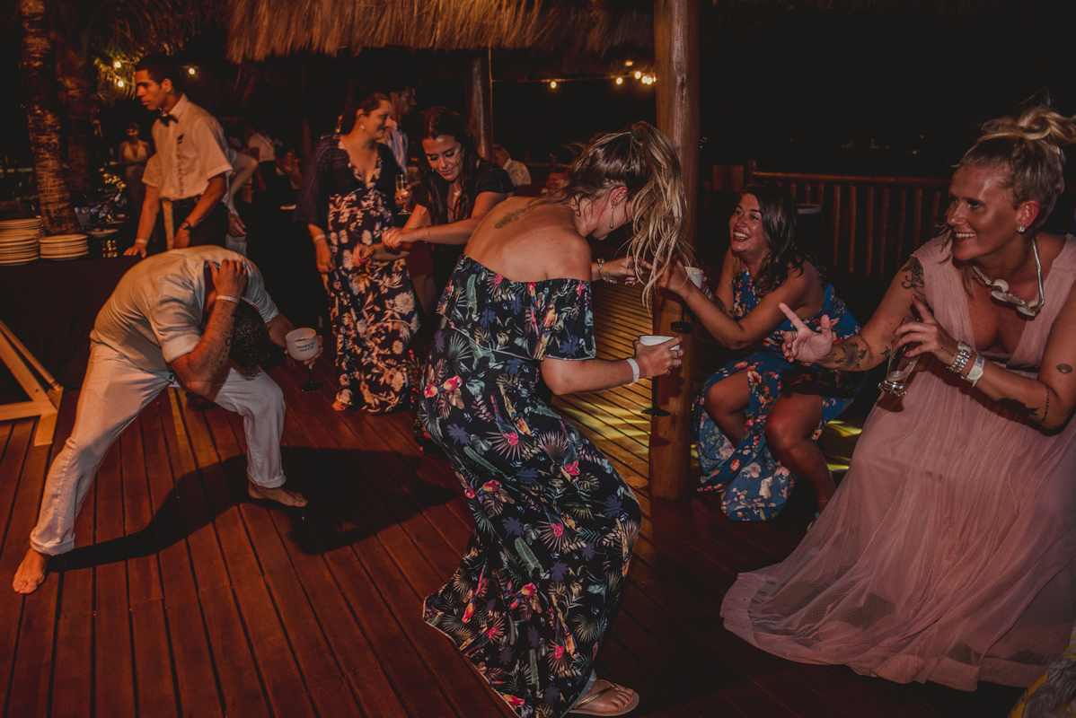 A cerimônia aconteceu exatamente no por do sol com noivo descalço, todo mundo em pé emanando boas energias, com muito amor e amizade. A festa veio logo em seguida e foi de arrebentar! Yeaaah!