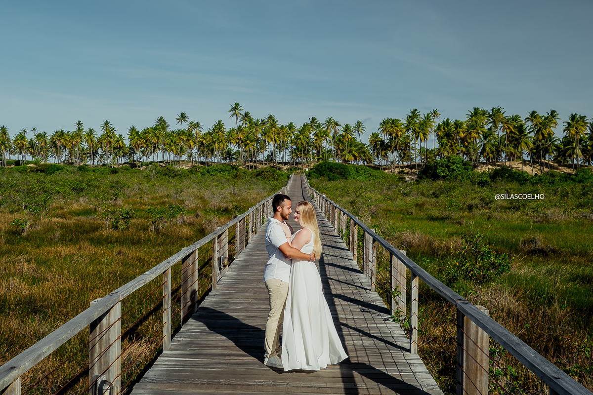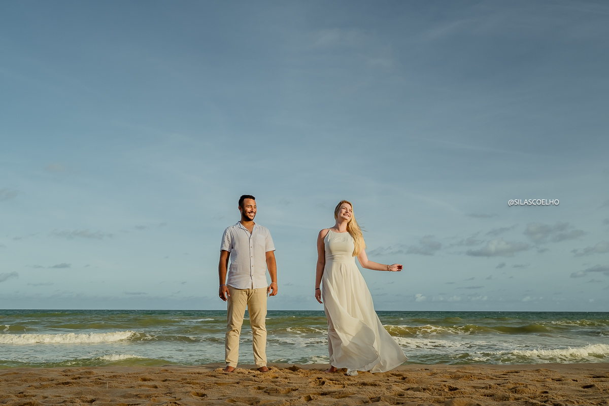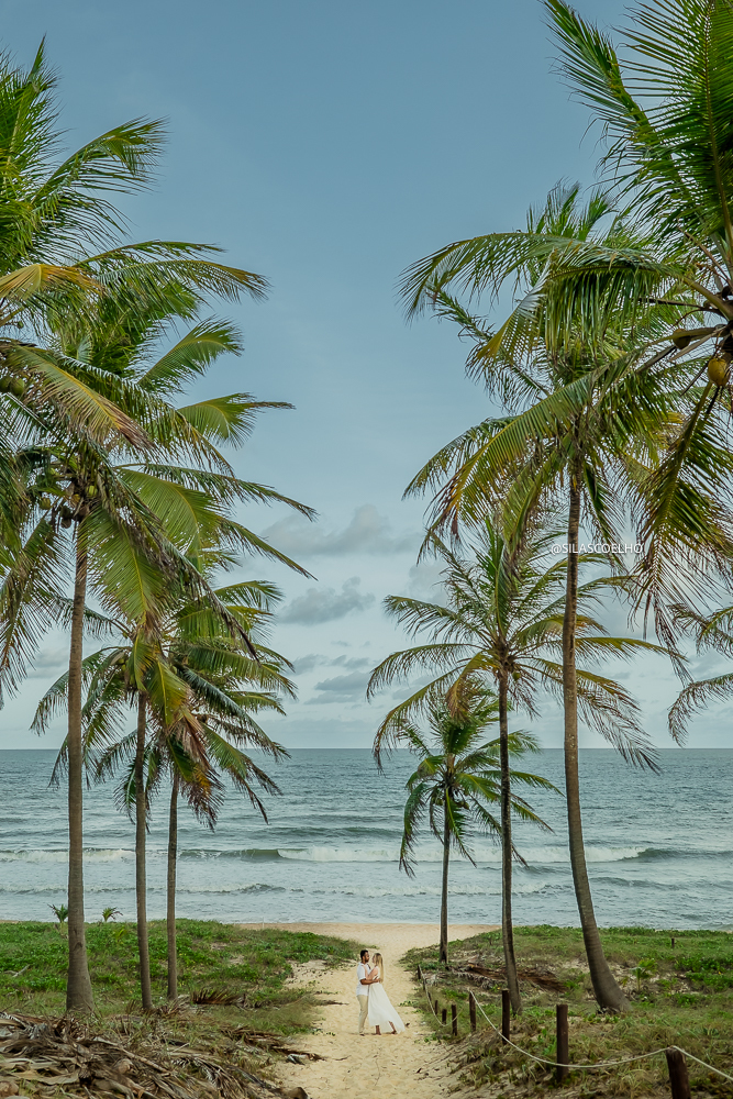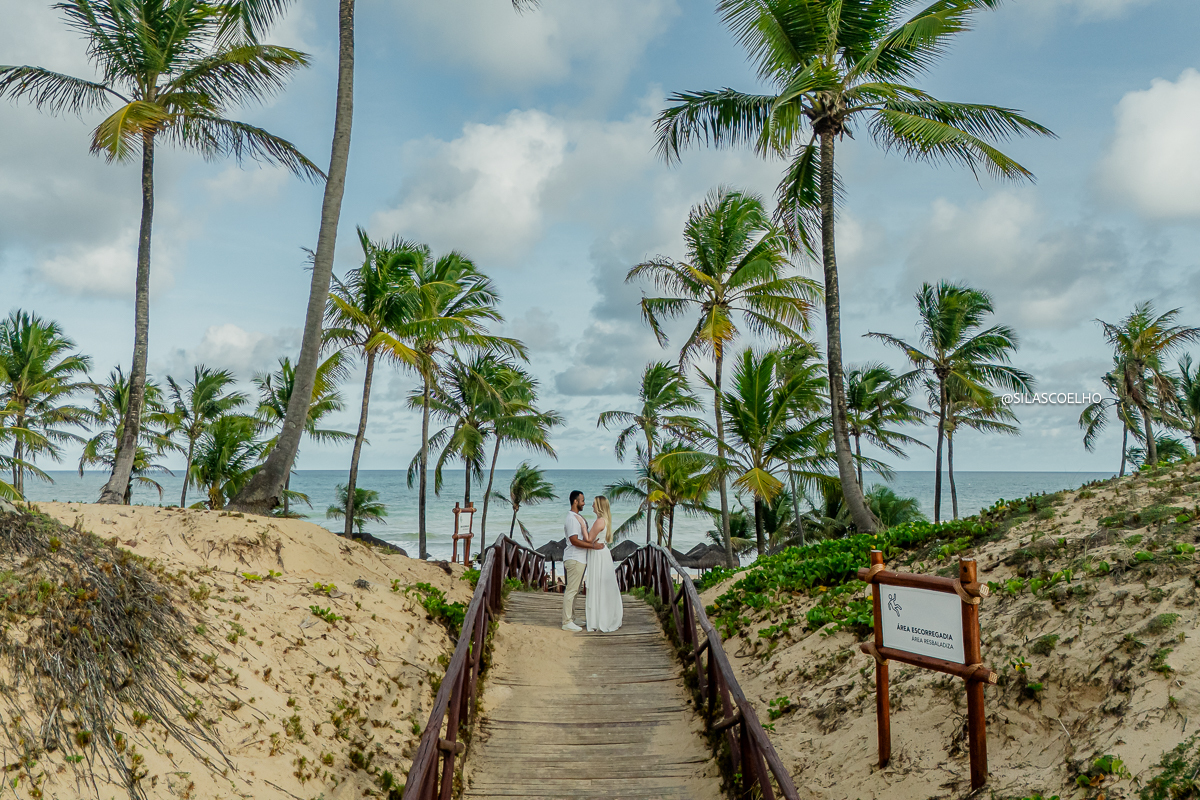 Numa tarde mágica à beira-mar, Vitória e Pedro protagonizaram uma sessão de pré-casamento para lá de especial, com os pés na areia da deslumbrante praia do Resort Grand Palladium Imbassaí, na Bahia.