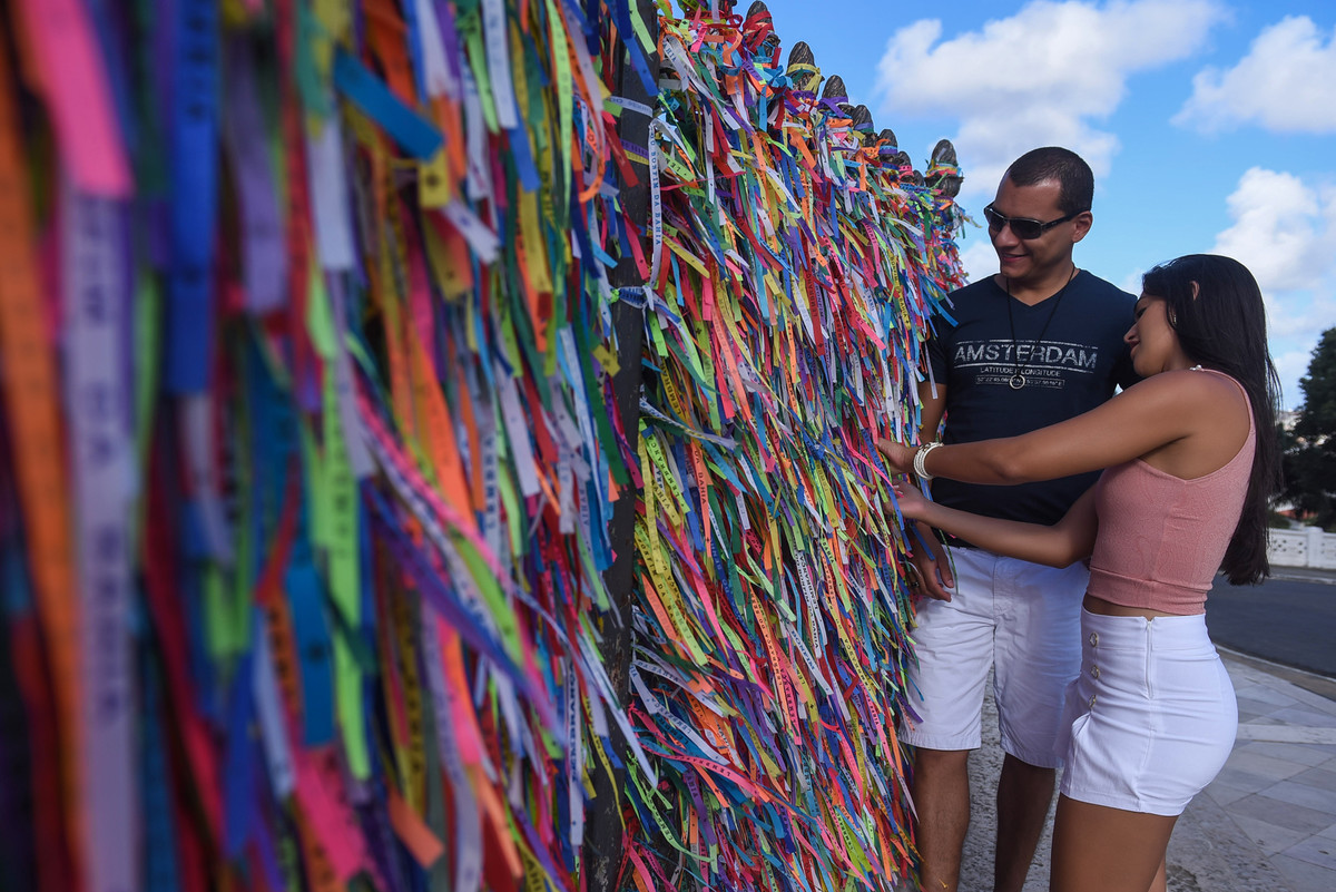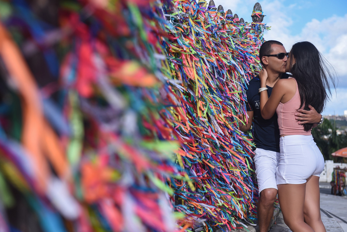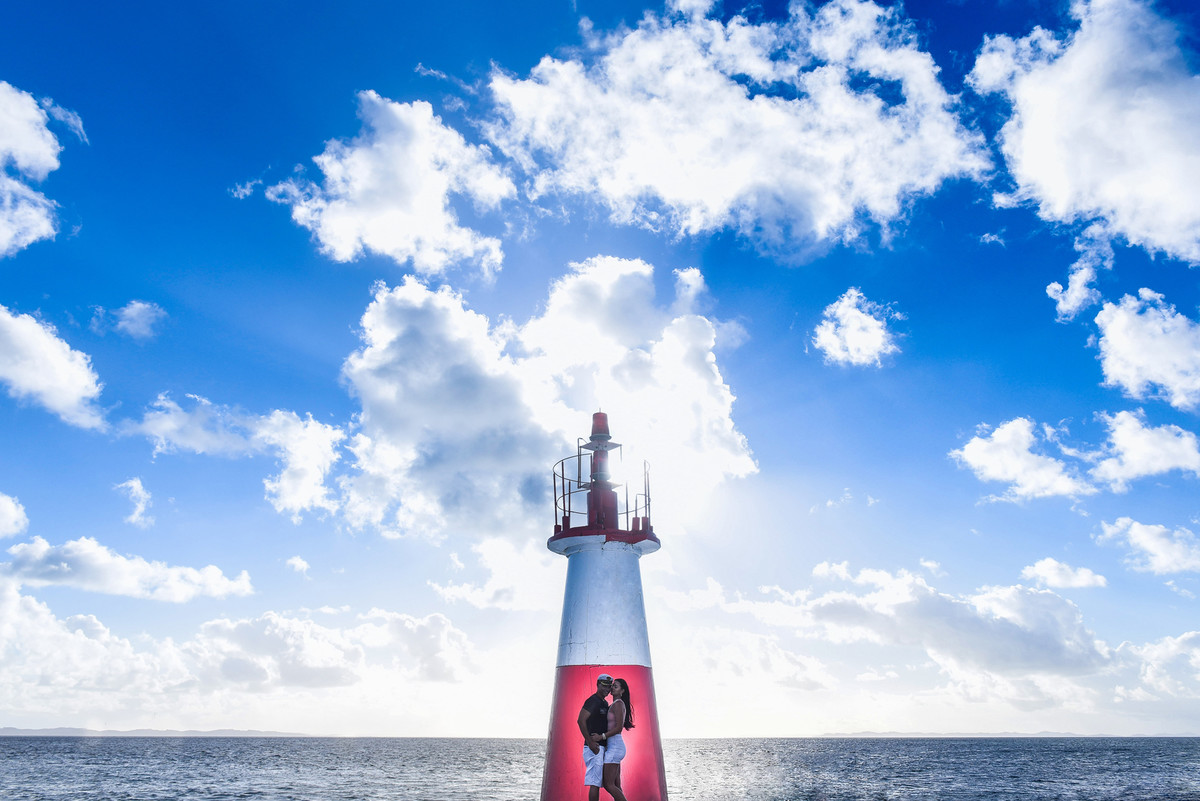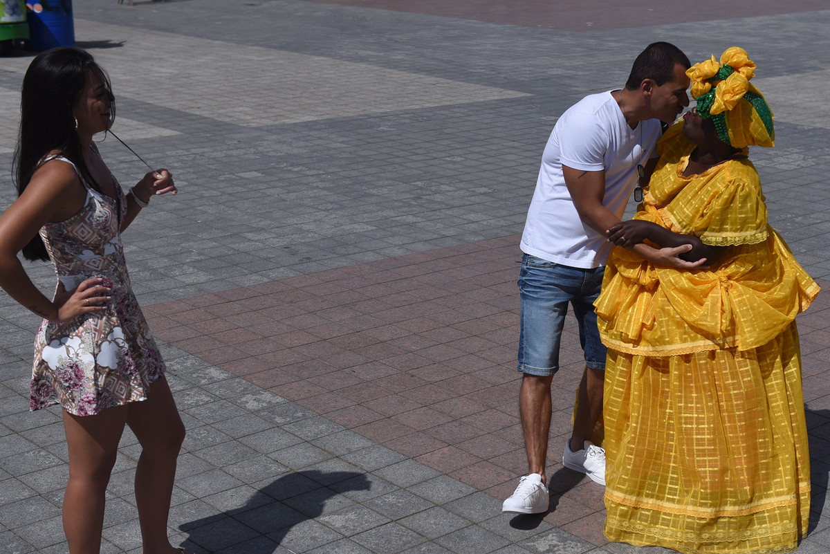 Em nossa conversa inicial, descobri que eles, além de serem muito apaixonados um pelo outro, são tbm por carnaval. Então não poderiam faltar fotos no maior cartão postal e início do circuito do Carnaval, Barra - Ondina, o Farol da Barra. Não poderia faltar fotos no maior símbolo de fé, na Bahia, que é a Igreja do Senhor do Bonfim, nem com uma baiana de acarajé né? kkkkkkk