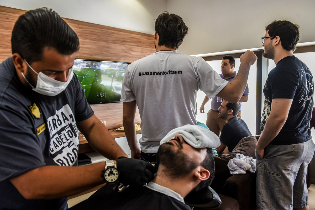 Começamos o casamento fotografando o dia do noivo na barbearia que em minha opinião, todos os noivos deveriam fazer o mesmo! É muito lega! Depois chegamos pra fotografar o making of da noiva e continuar o do noivo, mas já no local do casamento. eheheheheehh