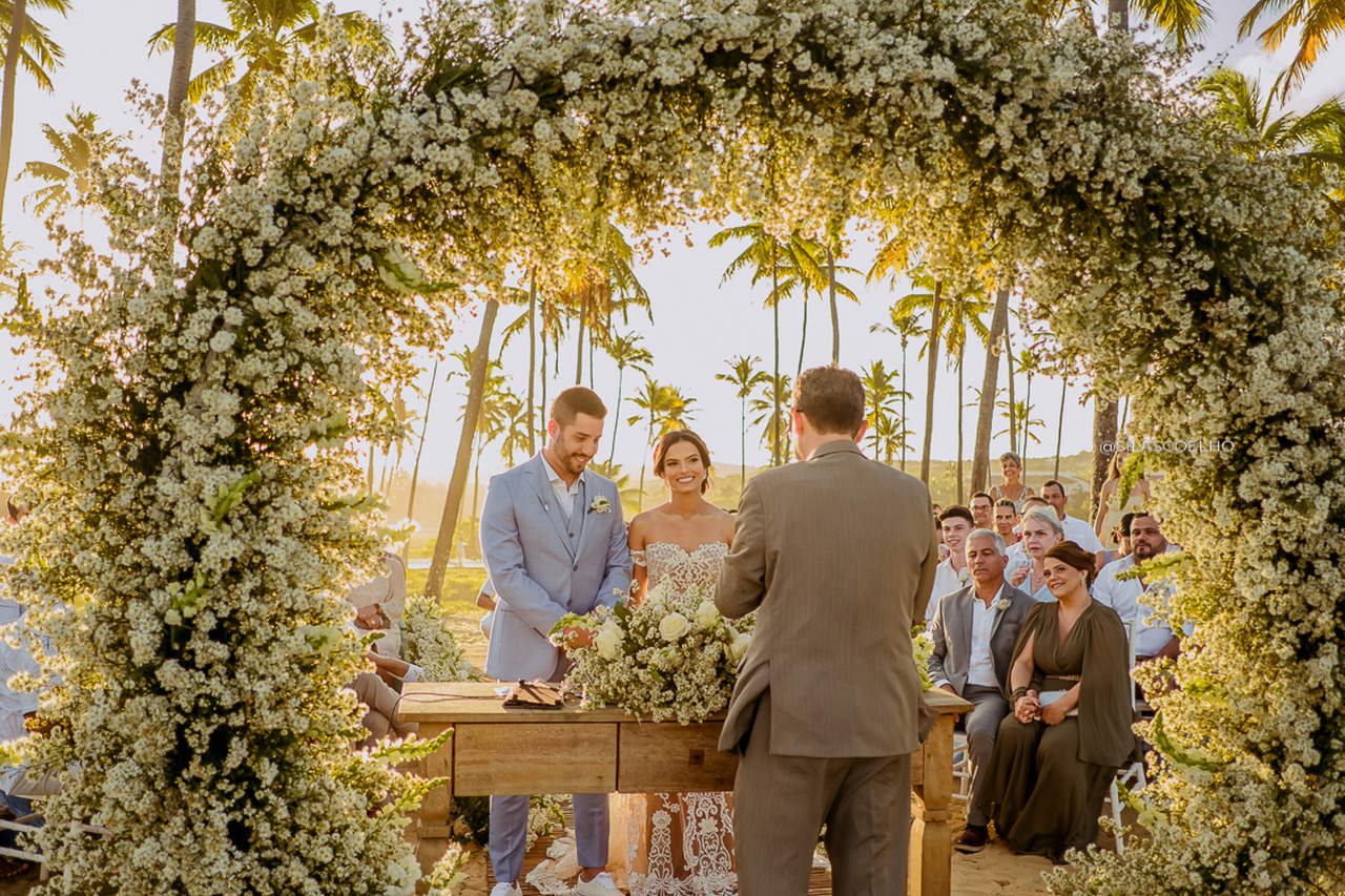 A história do casamento de Jessica e Adriano é uma daquelas que fazem qualquer pessoa se emocionar. O casal decidiu realizar o sonho de casar na praia, com os pés na areia, em frente ao mar e no pôr do sol, e escolheram o Grand Palladium Imbassaí, na Bahia, como o cenário perfeito para essa ocasião especial.